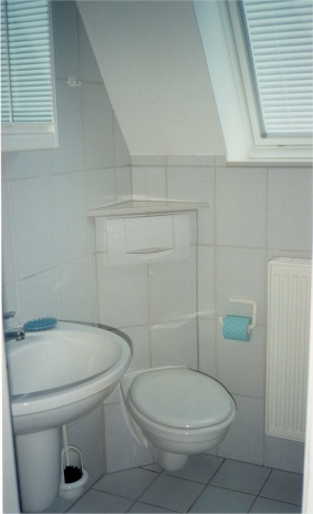Das Bad ist mit einer Dusche ausgestattet. Hier steht auch eine Waschmaschine zur Verfügung. |
